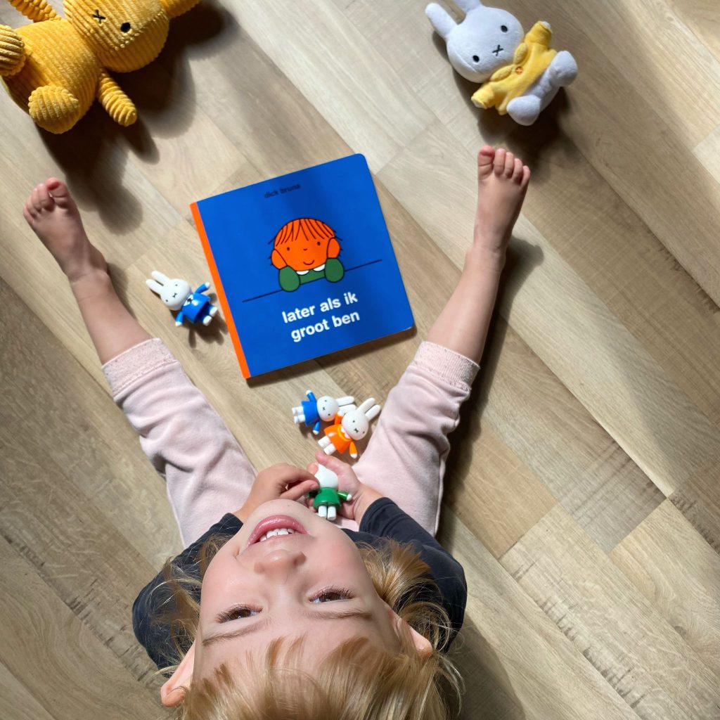 ‘Gelukkig zijn’ is een belangrijk onderdeel van later. Ik heb nooit stilgezeten en ben de wereld gaan rondreizen, heb vele diverse banen gehad en ben altijd gelukkig geweest in wat ik heb gedaan. Ik heb mezelf meerdere namen mogen geven en inmiddels is voor mij “later”, een pedagogisch professional. Alhoewel, ik zit middenin een wisseling van werkgebied dus “later” is ook nog steeds in ontwikkeling voor mij. Met Dick Bruna zijn Later als ik groot ben maak ik een begin in de bewustwording van mijn jongste dochter.