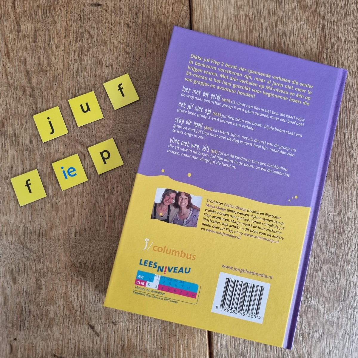 Met Dikke juf Fiep haal je dus een boek in huis wat je langer kunt gebruiken. Wel zo fijn, want de leesontwikkeling gaat zo snel dat boekjes al gauw niet meer bruikbaar zijn. Ook in groep 4 zullen kinderen de verhalen over deze juf kunnen waarderen. En het fijne is dat als je het vierde verhaal uit hebt je gewoon weer opnieuw kunt beginnen. Kinderen houden namelijk van herhaling. Tip: Dikke juf Fiep is echt een zelfleesboek. Wil je gaan voorlezen? Zoek dan een boek met vollere zinnen en geen AVI-restrictie.