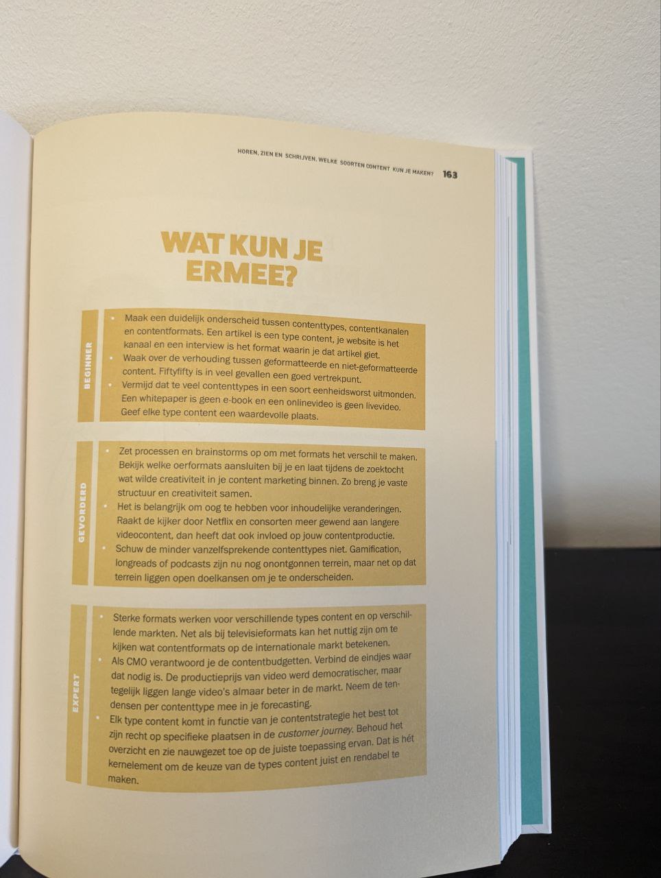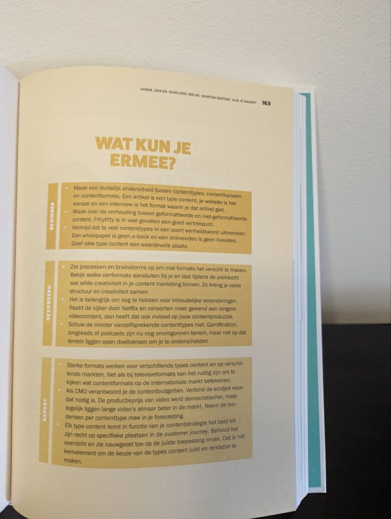 Achterin het boek zijn zelfs nog lijsten met inspiratie voor websites om te bezoeken en boeken om te lezen. Als je dus de smaak te pakken hebt en verder wil met content marketing, hier hoeft nog geen einde te zijn.