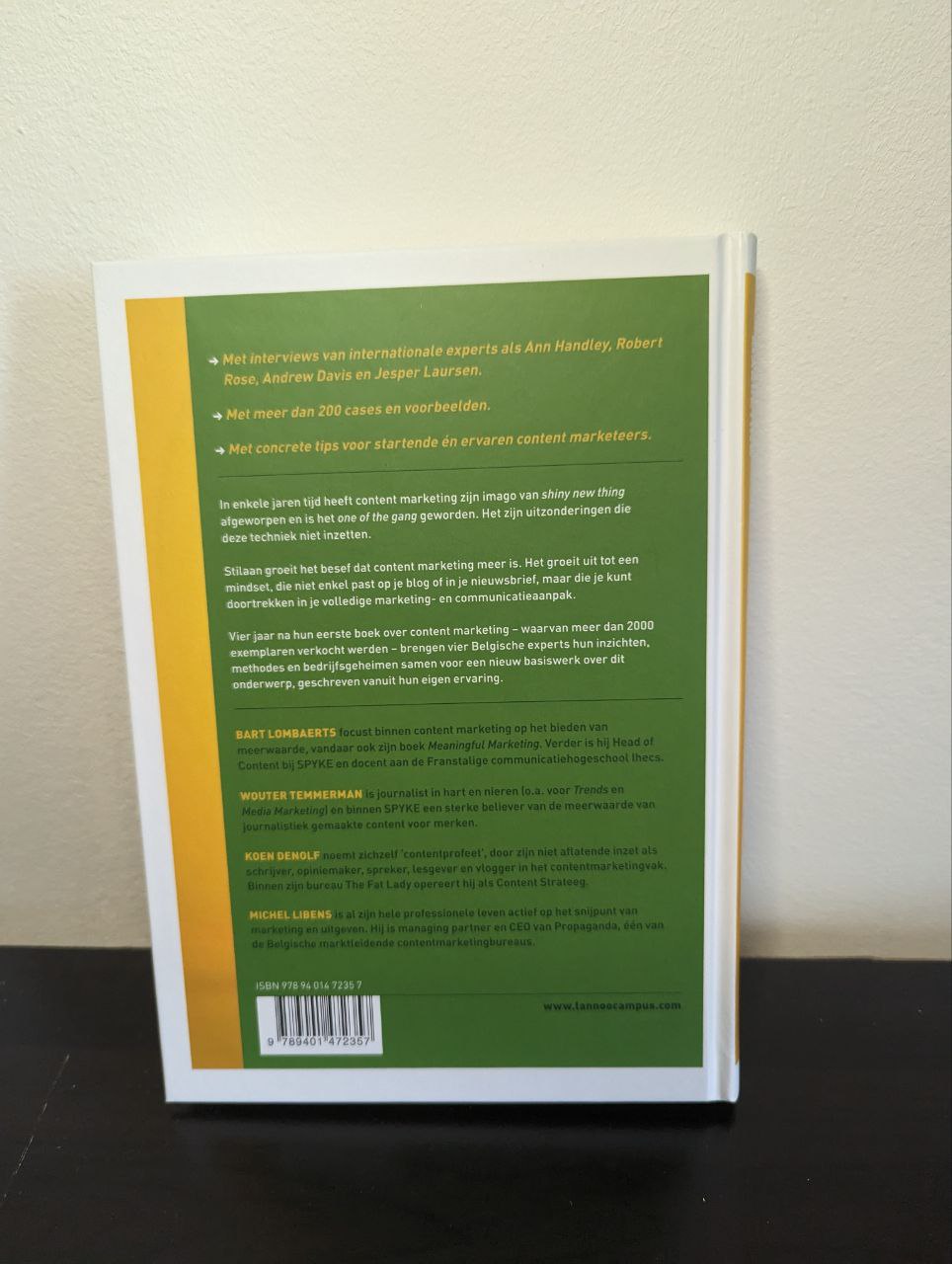Dit is content marketing is geschreven door Bart Lombaerts, Wouter Temmerman, Koen Denolf en Michel Libens. Allemaal hebben zij op hun eigen manier relevante ervaring. In dit boek delen deze vier Belgische experts hun ervaring en insider tips. Tijdens het lezen merk je dat zij allemaal hun eigen vakgebied en ervaring hebben. Dit vond ik leuk om te lezen en liet ook zien dat je marketing op verschillende manieren kan benaderen en dit diverse discipines vergt. Mocht je meer willen weten, hier kort enkele informatie;