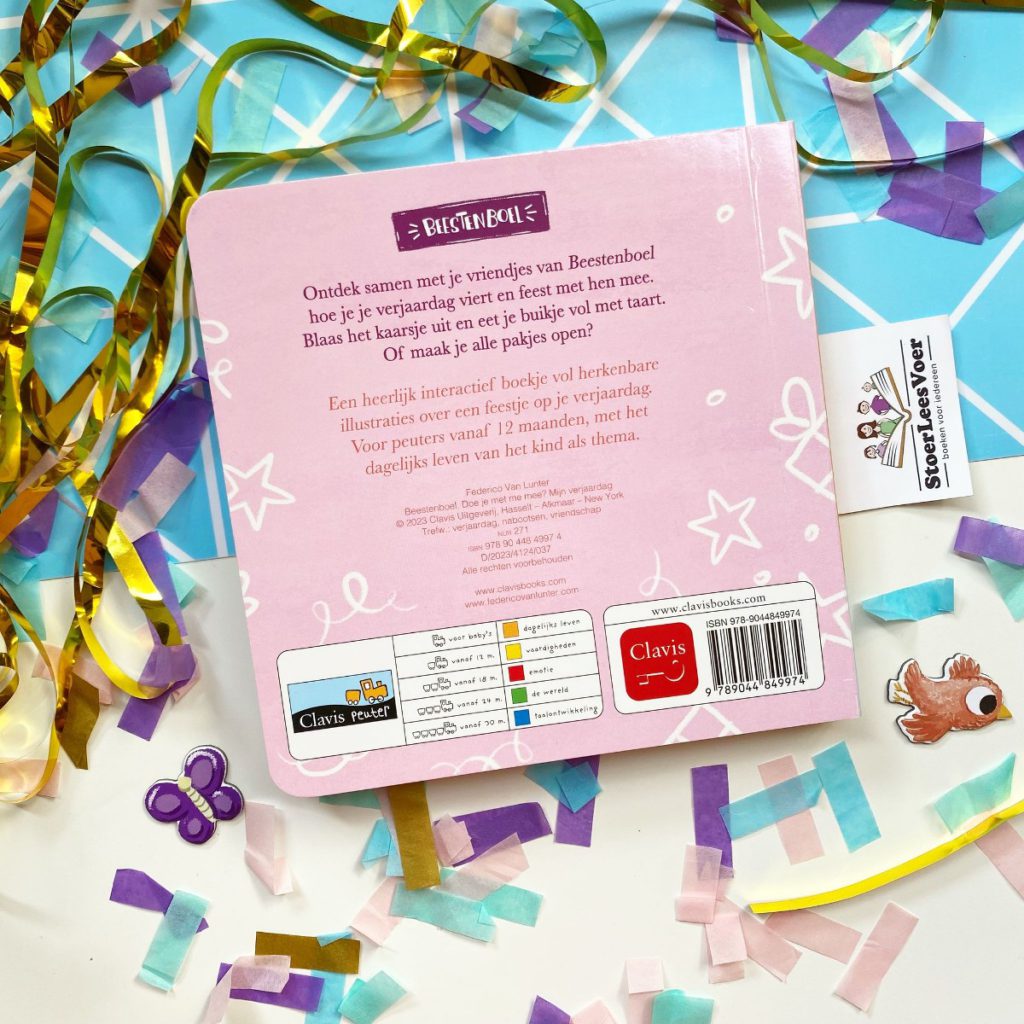 Doe je met me mee? Mijn verjaardag is een vrolijk kartonboekje die wel tegen een stootje kan. Je kan het voorlezen maar kinderen mogen ook meedoen met dit verhaal. Federico Van Lunter heeft met zijn Beestenboel boekenserie diverse boeken gemaakt die direct kinderen zullen aanspreken. De ‘Doe je met me mee?’ boekenserie nodigt uit om actief mee te doen met het verhaal. En dat is iets wat jonge kinderen maar al te graag doen.