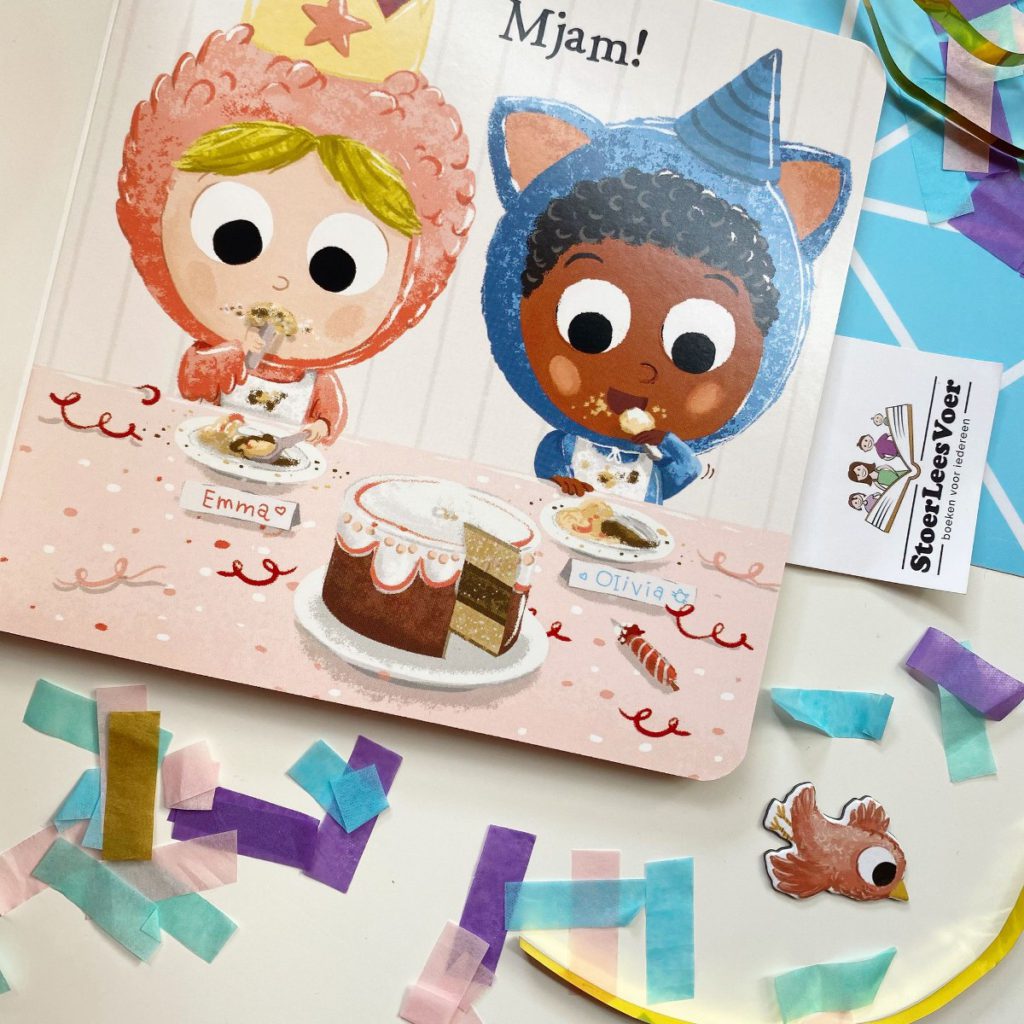 Allemaal bewegingen die bij het thema feest en verjaardag horen en die door ieder kindje wel uit te voeren zijn. Één kleine waarschuwing… mijn dochters kregen trek van het smullen en van de taart en vonden dat ze eigenlijk wel een stukje taart verdiend hadden na dit boekje.