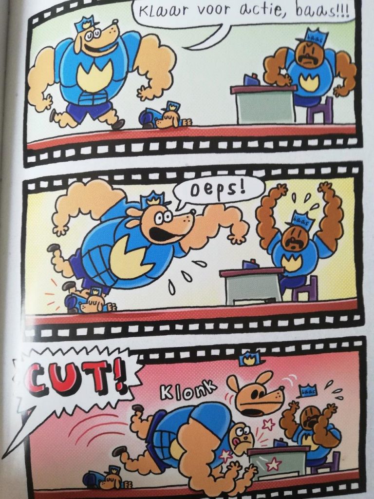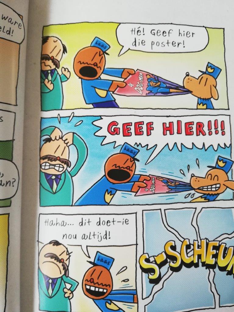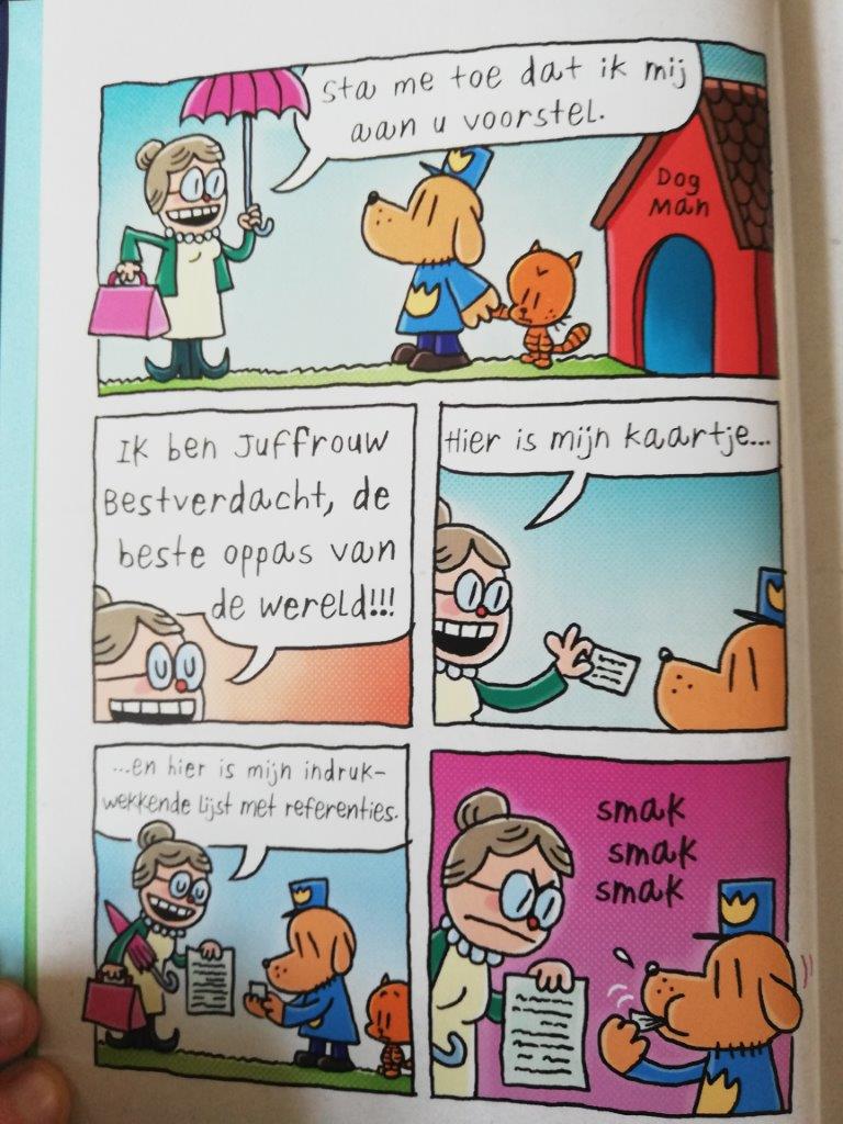 De tekenstijl van de tekenaar is niet veel veranderd ten opzichte van de eerdere delen, maar je ziet wel variaties. In de eerste delen was er niet echt een uitdrukking op de gezichten van de personen in het boek. Nu zie je echt de emoties die ze voelen. Dog man en Kid Kat is niet alleen grappig, soms ook een beetje triest. Soms zegt Karel dingen waar Kleine Karel erg verdrietig van. Meestal is het hilarisch. Ik lach altijd veel om de verhalen van Dog Man. Het zijn vooral grappen die kinderen begrijpen, maar mijn ouders vinden het ook erg grappig. Nu zitten we regelmatig aan tafel de grappen na te doen uit Dog Man, ook uit de eerdere delen. Om sommige lachen we nu nog steeds.