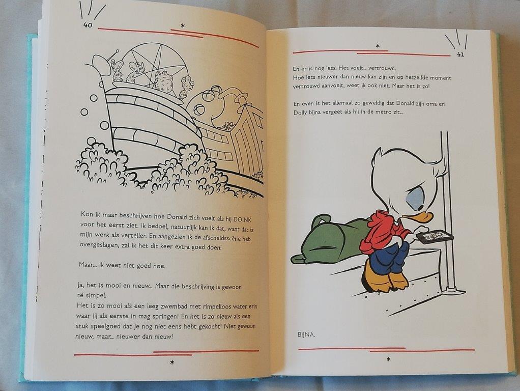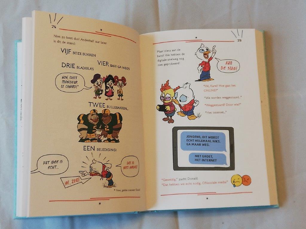 Ik vind dat Donald Duck en zijn vrienden grappiger zijn dan normaal. Want de verteller praat ook met Donald. Dan kunnen er soms grappige situaties ontstaan. Of Donald doet zelf grappig zonder het te weten. Donald krijgt bijvoorbeeld een appje van de school dat hij alleen maar onvoldoendes heeft waarop hij reageert: ‘Oh nee! ik heb alleen maar onvoldoendes. Behalve voor gym!’ Vervolgens krijgt hij zijn gymcijfer: Inderdaad een onvoldoende. Als je mijn humor niet snapt kun je het zelf ook gaan lezen ;).