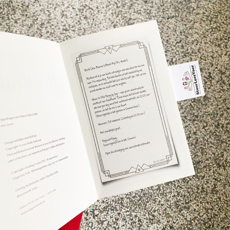 De kennis hebben van wat gaat komen is echt heerlijk. Ik zou dit deel ook aanraden om als vierde deel te lezen in de trilogie. Je kan ermee beginnen, maar ik denk dat het plezier er ook in zit dat je al weet wat gaat komen. En het voelt echt even als een cadeautje na het zware derde deel. De 141 bladzijdes lezen fijn, het lettertype is ruim en de bladspiegel is speels zonder het kinderlijk te maken. De vormgeving is weer zoals we die kennen van Holly. Her en der zitten leuke opmaakelementen in de vorm van een uitnodiging of aanwijzingen uit het spel. Dat zorgt voor meer leesplezier wat mij betreft. En ook is het voor mij een teken van de liefde en aandacht die Holly voor haar verhaal heeft. Die extra elementen voelen als strikjes op het cadeautje dat Doodleuk voor mij is.