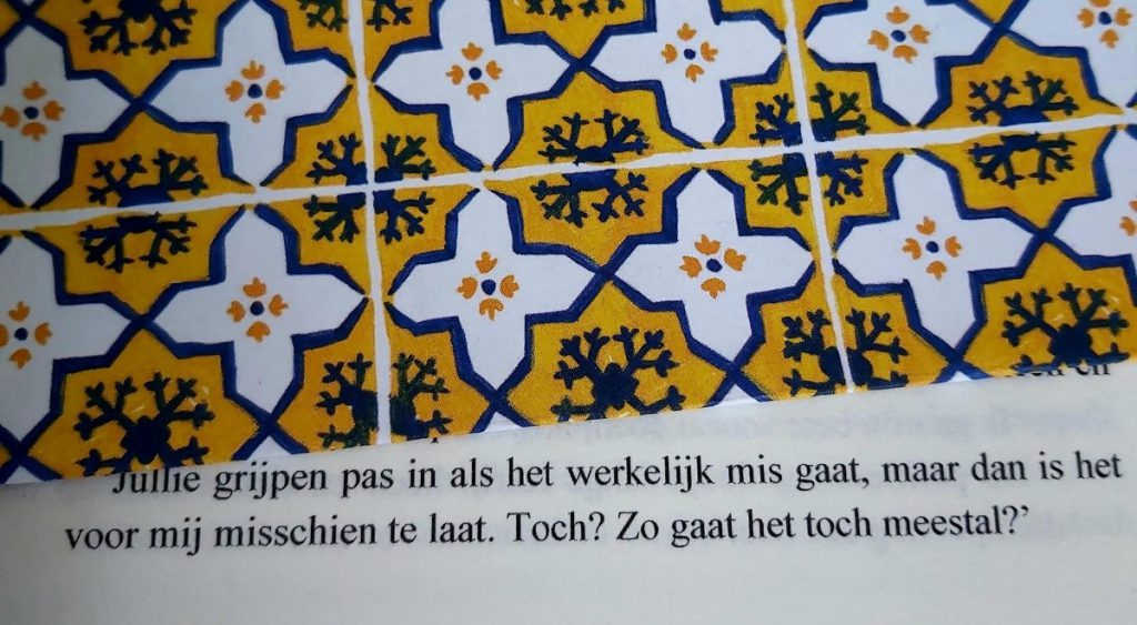 Portugal of geen Portugal? Portugal, een soort van blinde vlek in mijn systeem. Geen Portugees eten, geen Portugese muziek of vakanties. Er is zelfs geen Portugees schoteltje bij mij in huis te vinden. Waarom? Ik weet het niet. Toen het boek ‘Dreiging in Algarve’ – van Ellen van Herk dan ook op de recensielijst van StoerLeesVoer voorbijkwam vond ik dat een mooie gelegenheid om eindelijk eens die kant uit te gaan. En uiteindelijk vond ik een papiertje met een Portugees motiefje!
