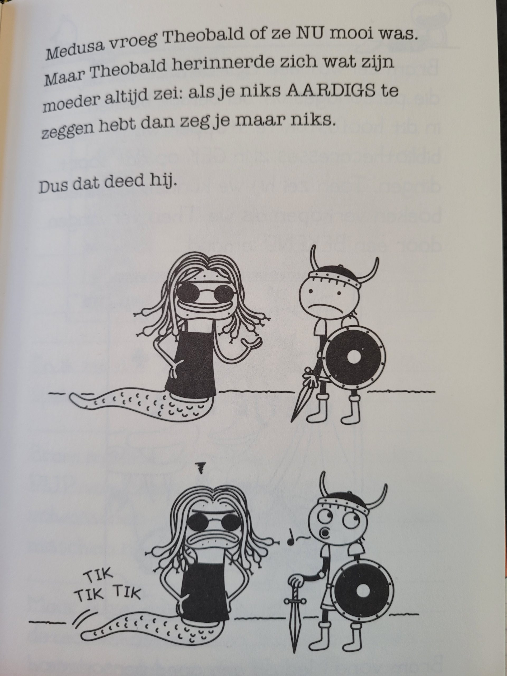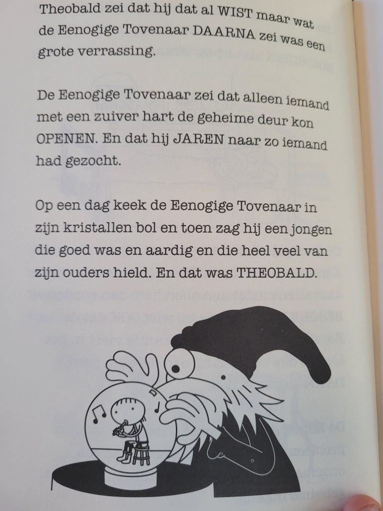 Theo Thorbecke gaat een episch avontuur schrijven, over Theobald, een jongen die zijn moeder moet redden van de Witte Magiër. Samen met zijn beste vriend Barm gaat hij op pad. Maar elke dag gebeurt er wel iets waardoor ze in de problemen komen. En daarnaast moet Theo zelf het gezeur van zijn vriend Bram aanhoren over ‘copyright’, films, spelletjes, actiefiguren en games. Terwijl Theo gewoon een leuk verhaal voor op bed wil schrijven. Ik heb met die jongen te doen😥.