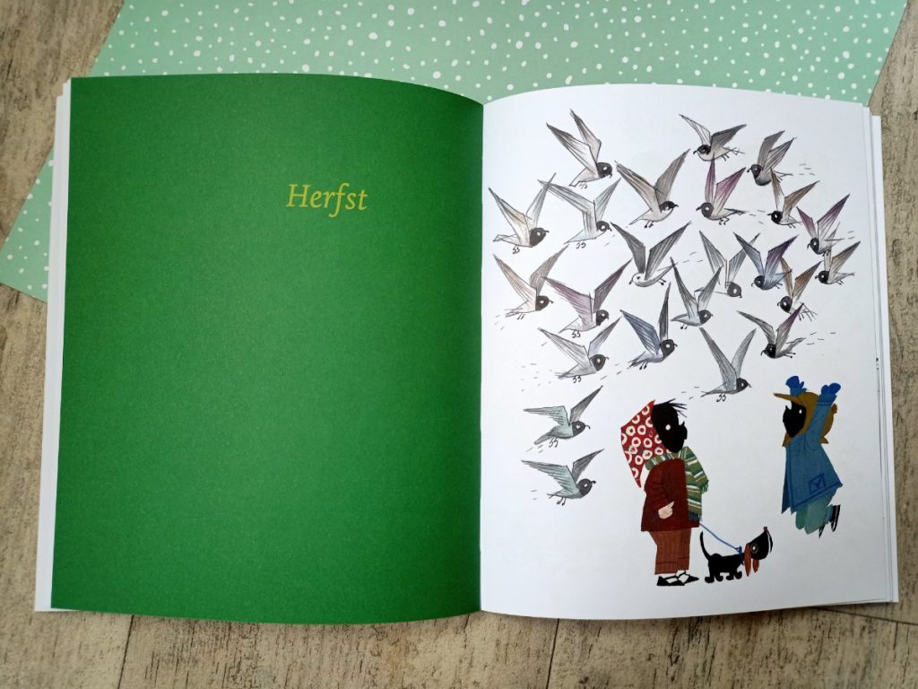 Heb je thuis ook een kijktafel staan? Of een seizoenstafel misschien? Rouleer jij de voorleesboeken ook per seizoen, feest of gebeurtenis? Dan is een heel jaar Jip en Janneke echt iets voor jou. Alleen kun je hem dan gebruiken in alle seizoenen. De verhalen zijn opgedeeld per seizoen, van lente naar zomer naar herfst en winter. Tussen de 11 en 14 verhalen per seizoen. Voorzien van een super leuke illustratie in kleur (!!!) en dat vind onze dochter dus echt geweldig. En ik stiekem ook. Het maakt het verhaal helemaal af.