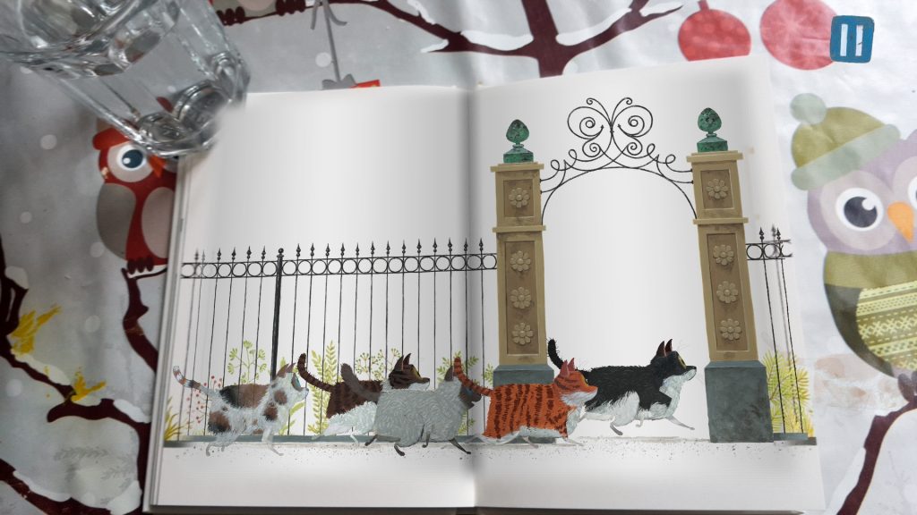 Richt je camera boven het boek zodat je het hele boek kunt zien en dan bewegen er bepaalde onderdelen zoals de katten en de vlinder, je ziet het echt regenen en zo nog wat meer leuke trucjes. Zo zie je bijvoorbeeld dat er heel veel katten naar het park gaan op zoek naar Vera!