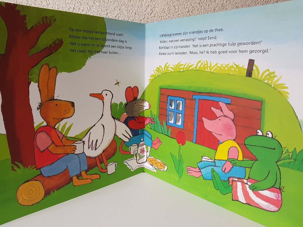 Dan is het voorjaar en Kikker wacht op zijn verrassing. Er is nog helemaal niks te zien. Maar wat is dat nou? een klein groen puntje steekt boven de grond. Van Rat mag Kikker er niet aanzitten.