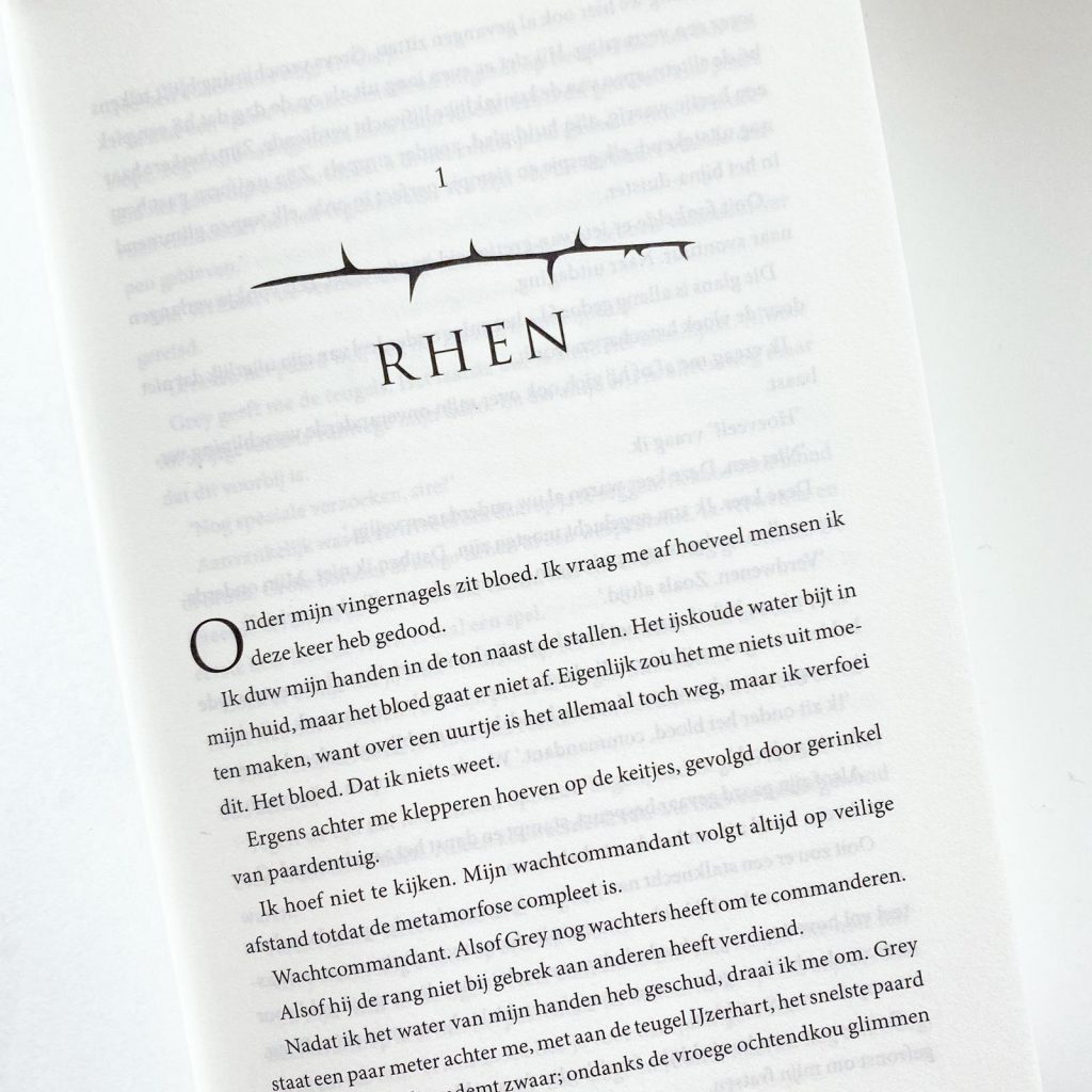 De magie, spanning en snelheid zit goed in ‘Een vloek zo eenzaam’. Rhen is de dominante stugge man, Grey is mysterieus en Harper is een sterke vrouw. Dit in de magische wereld van Sinteldaal werkt gewoon goed. Ik kan het boek dan ook met moeite wegleggen en de eerste 200 pagina’s zijn zo verslonden. Daarna begint het voor mij persoonlijk op sommige punten een beetje te irriteren. Niet storend, maar ik zou Harper wel door elkaar willen schudden en willen uitleggen dat samenwerken of hulp accepteren geen teken van zwakte is. Tegelijk hebben wij natuurlijk de info van Rhen en de achtergrond informatie van zijn verhaal. Daardoor ben ik wat ongeduldig. Maar ook Rhen doet soms wat moeilijk, spreek je toch uit jongen!