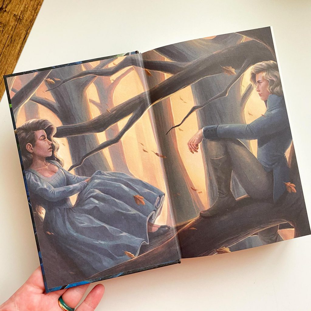 Wat ik zo heerlijk vind is de slimme krachtige “Belle” en het woeste van het beest. Tegelijk ontstaat er een liefde wat zo puur en oprecht is, dat het raakt. Dus ik had dan ook hoge verwachtingen van ‘Een vloek zo eenzaam’. Het boek is een uitgave van Blossom Books en de persoonlijke touch en liefde voor dit boek spat er weer vanaf. Een persoonlijk voorwoord vanuit de uitgever, een mooi ontworpen kaft en een passende zwijmelillustratie op het schutblad. De illustratie is mooi maar voor mij raakt en roert er niet direct is. Daarna volgt er een kaart van het koninkrijk van Rhen en ik begin me af te vragen of het niet een heel ingewikkeld verhaal gaat worden. Ik heb eigenlijk gewoon zin in wat meer luchtigheid.
