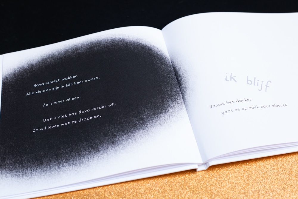 De vrolijke Nova speelt alles alle andere kinderen. Ze is vrolijk en blij. Huppelt rond en zingt en danst. Tot zij naar huis gaat. Hier voelt het vaak als een donderwolk. Thuis lukt het niet om de leukste of liefste te zijn. Hier groeit het donkere wolkje met haar mee. Hoe hard ze ook had gehoopt dat het minder zou worden als ze ouder zou worden. Want als je groot bent mag je immers doen wat je wilt. Helaas. Nova’s donkere wolk groeit met haar mee. Groter en groter. Tot er haast alleen nog kleur is in haar dromen.