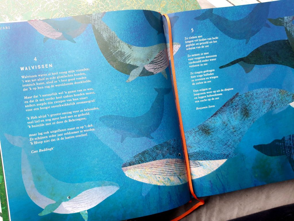 We leven als mens op deze aarde samen met heel veel dieren. We ademen dezelfde lucht en vangen dezelfde zon. Zo begint deze dichtbundel met het gedicht Levenden van Maurits Mok. Met een prachtige illustratie van een ijsbeer en haar jong. En daarmee wordt eigenlijk meteen duidelijk gemaakt hoe belangrijk en waardevol het is als we ook in de toekomst kunnen blijven samen leven op onze aarde. Door Katelijne Brouwer wordt mooi verwoord dat een klimaat met altijd zomer geen goed idee is: