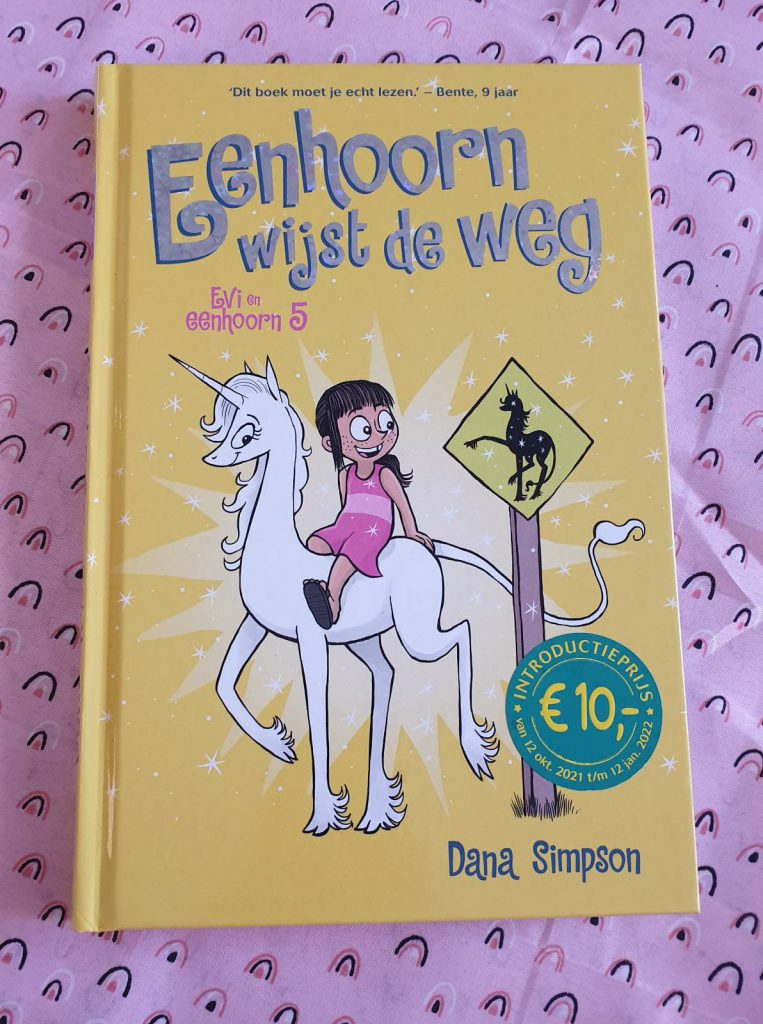 Eenhoorn wijst de weg is alweer het vijfde deel uit de serie van Evi en Eenhoorn. Wij hebben thuis bijna alle delen en ze worden regelmatig erbij gepakt door mijn dochter. Dat snap ik heel goed want door de kleine stripjes leest het alsof je een Donald Duck zit te lezen, maar dan een met veel meer humor van deze tijd en natuurlijk met een heel eigenwijze eenhoorn erbij en een meisje dat misschien wel net zo eigenzinnig is.