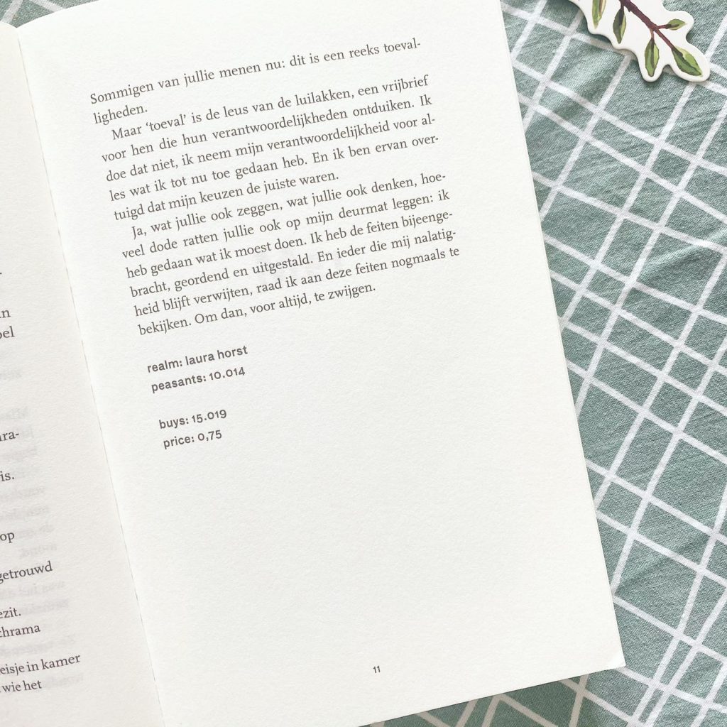 Want dat moment heb ik in beide boeken ervaren. De boeken van Hanna zijn heel, voor mij, aangenaam gelaagd. Op het oppervlakte een prima roman. Toegankelijk en vlot. Maar onder het oppervlak ligt zoveel meer verborgen. Het moment dat ik door het ijs zak en kennismaak met de ijskoude wereld eronder, is heerlijk. Alle prikkels komen in een seconde binnen in mijn hersens en meteen heb ik de behoefte om terug te lezen of beter nog, het boek vanaf het begin nogmaals te lezen.