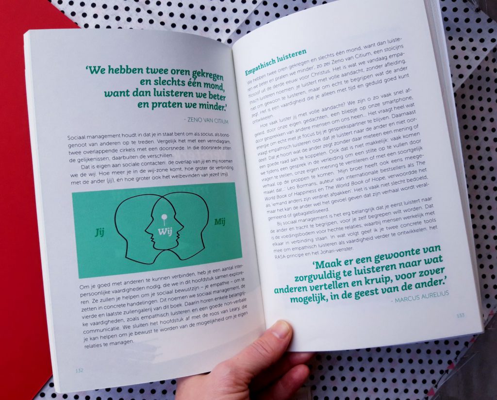 Maar dit boek heeft veel potentie als leidraad voor een vak of cursus op school. Waar iedereen eigenlijk les zou moeten krijgen in deze belangrijke vaardigheden. Want de wereld is enorm gebaat bij jongeren met een sterk ontwikkelde emotionele intelligentie. Met een mooie tekst van auteur Elke Keersmaekers aan het begin van het boek waarin dat prachtig verwoord wordt. Over hoe zij hoopt dat het boek inzicht en steun kan bieden in de zoektocht naar een gelukkig leven. Over je eigen identiteit en een evenwichtige balans tussen de ik en de ander.