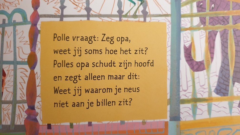 Sja best een goede vraag: En hoe komt toch een olifant aan al die kilo’s grijs? Vertel jij het antwoord maar, want ik weet niet hoe ik dat aan kinderen uit moet leggen. Waar ik voor ik leerkracht was nog lekker tegen mijn dochter kon zeggen dat ze de vraag maar aan haar meester moest stellen, nu ben ik toch echt zelf de Sjaak. Als leerkracht moet je immers op elke vraag het antwoord weten toch?! Zelfs de opa van Polle weet het niet, maar 1 ding weet hij wel..