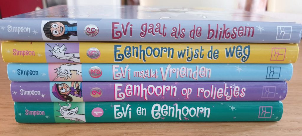 Evi gaat als de bliksem is deel 6 in de populaire serie Evi en eenhoorn van Dana Simpson. Lachen verzekerd voor eenhoornfans vanaf 8 jaar en hun ouders. En eigenlijk hoef je niet perse eenhoorn fan te zijn vind ik. Gewoon de combinatie van magie, sarcasme, grappen en illustraties maken dit een favoriete boekenserie voor kinderen vanaf 8 jaar.