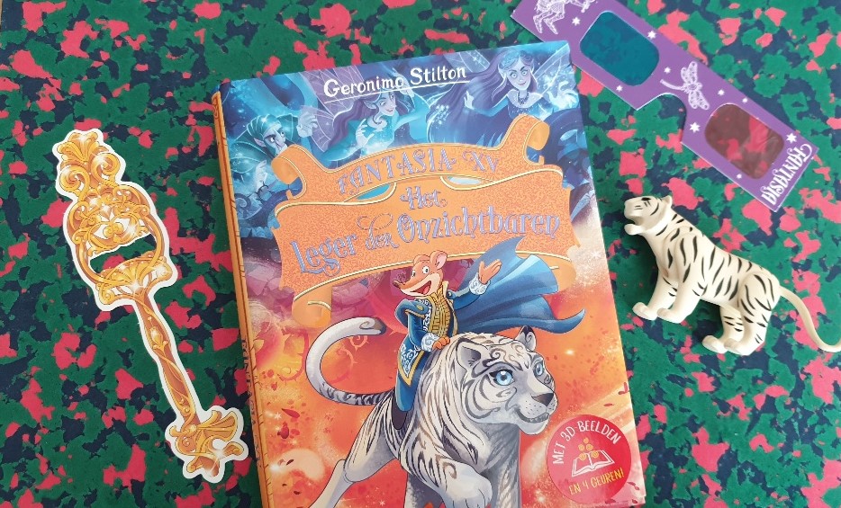 Hoe meer boeken ik lees van Geronimo Stilton hoe enthousiaster ik word. Ik ging met het leger der onzichtbaren aan de slag inclusief een 3D bril en een uh wasknijper 😉 De serie Fantasia (Bol) kende ik nog niet, maar gelukkig kun je alle delen los van elkaar lezen. Ik heb er in elk geval geen last van gehad doordat er regelmatig korte flashbacks voorbij komen als een soort trigger om dat boek ook te lezen. Heel slim gedaan.