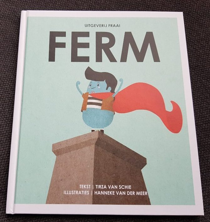 De kaft spreekt al boekdelen. Een stoere jongen met een cape en in groot formaat letters FERM! Totaal niet wat je verwacht van schrijfster Tirza van Schie als je denkt aan haar gedichtjes uit versjes van een moeder.