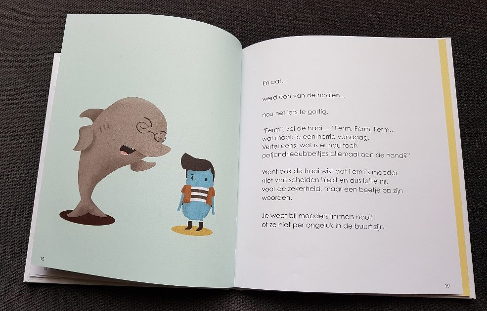 Ferm is een jongen wat nooit iets halfs doet. Hij speelt met veel fantasie en doet alles zo flink mogelijk. Zo is hij ook heel vaak heel boos totdat hij een tip krijgt van een haai.. Een prentenboek over emoties bij temperamentvolle kinderen.