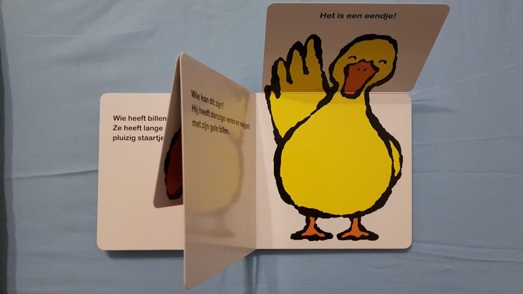 Van vroeger kende ik ze ook nog wel, van die boeken waarbij er pagina’s naar boven komen wanneer je de bladzijde omslaat. Mijn zoontje van bijna 2,5 jaar heeft ook een paar van dat soort leuke boeken. Hij is er wel voorzichtig genoeg voor om ze heel te laten, maar is nog wel een beetje zoekende wat hij ermee moet. “Zit er iets achter of moet ik iets openmaken?” zie je hem denken. Misschien is hij er nog iets te jong voor. Flapjes en pop-up boeken; Billen en de crèche van Muis zijn boeken van een fase vóór de boeken waarbij de pagina’s naar boven komen.