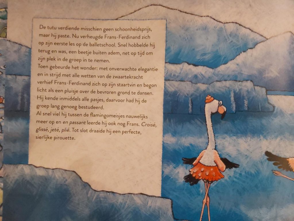 Ondanks de moeilijke woorden en het wijzen op de klimaatverandering is dit toch echt wel een heerlijk boek. Een dikke, logge walrus die aan ballet wil doen. En dan die hooghartige, bange flamingo’s. Het is geweldig beschreven en omschreven. Frans – Ferdinand die er toch voor zorgt dat hij een tutu heeft en doorzet om net te kunnen dansen als die flamingo’s. Geweldig! Een aantal van mijn kleuters deden na afloop van dit verhaal Frans Ferdinand wil dansen na. Hoe leuk is dat? Hou je van een boek over doorzetten en vind je verwijzingen naar de klimaatveranderingen niet erg, dan is dit jouw boek!