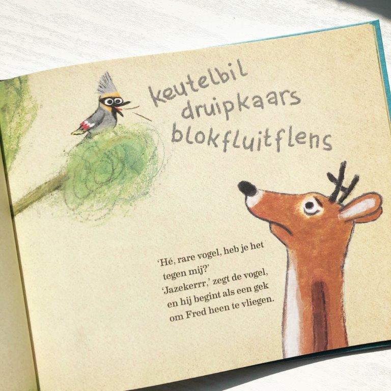 Dan is daar het keerpunt dat Fred En De Rare Vogel elkaar ontmoeten. Het is een heerlijk verhaal waar echt veel liefde achter zit en creativiteit. Geen kinderachtige flauwe taal, wijze les of een perfecte wereld. Nou ja in alles zit uiteraard een wijze les maar over deze mag je lekker zelf nadenken. Ik verklap verder niet veel en laat je verrassen. Wij zijn fan van Fred het hert en willen graag meer boeken van deze toffe serie lezen.