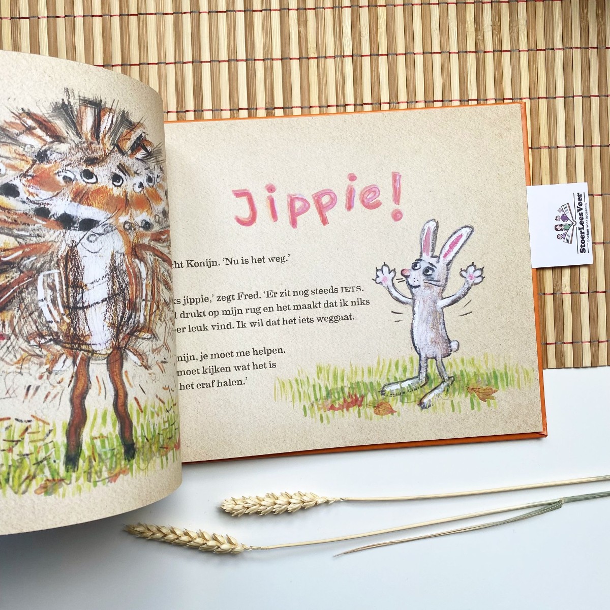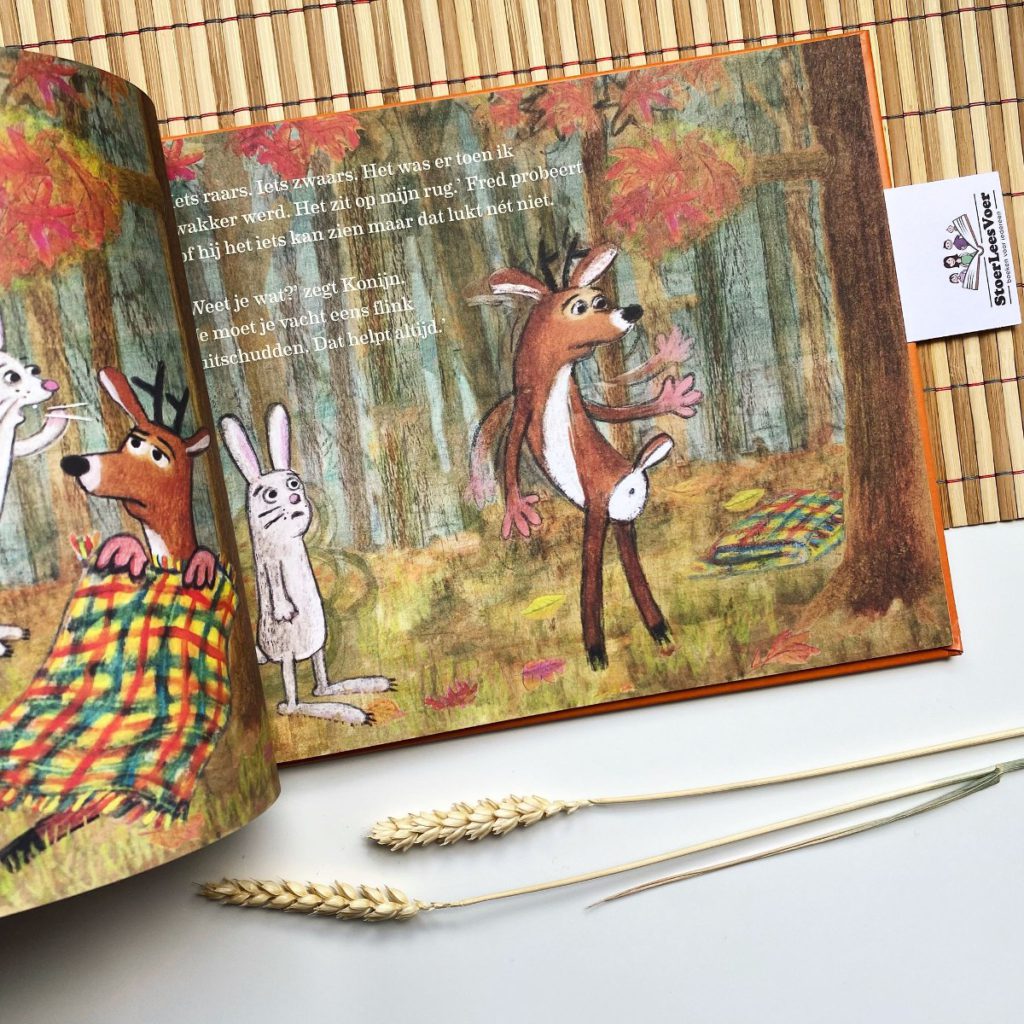 Fred en het iets laat zien dat er soms ook gewoon geen woorden zijn of er geen verklaring is. Soms moet je gewoon even voelen, of er gewoon even voor iemand zijn. Soms kan een dekentje gewoon heerlijk zijn. Pépé Smit heeft een actueel thema op haar eigen ‘Freddige’ manier weten te vertellen. Heerlijk ook hoe het eindigt dat Fred toch nog even gaat gluren hoe vrolijk konijn het bos uithuppelt. Een mooi voorbeeld hoe iets iemand zijn of haar perspectief kan zijn en dat een ander daar soms geen invloed op heeft. Mocht je nog wat dieper in de filosofie willen duiken met je kind :).