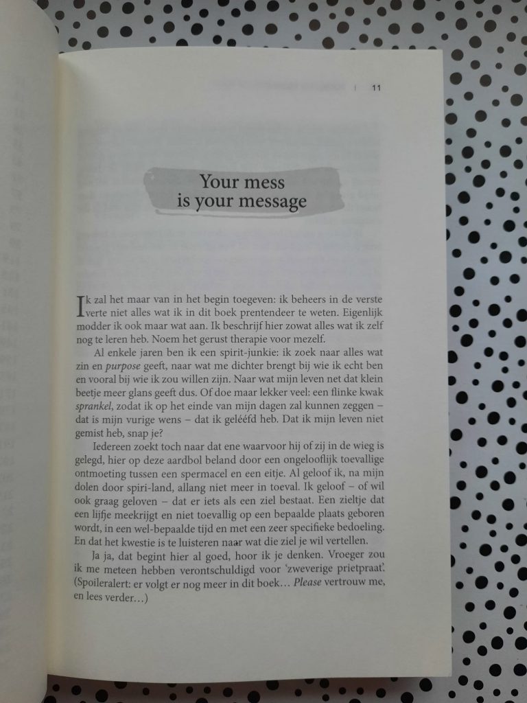 Het is een verzameling aan ervaringen en inzichten. Het enige nadeel daarvan, voor mij tenminste, is dat het prettiger is om daar niet al teveel van achter elkaar te lezen. Dus niet lekker in 1 keer doorlezen, maar juist af en toe een break. Dan komt de boodschap denk ik het meest binnen en tot zijn recht.