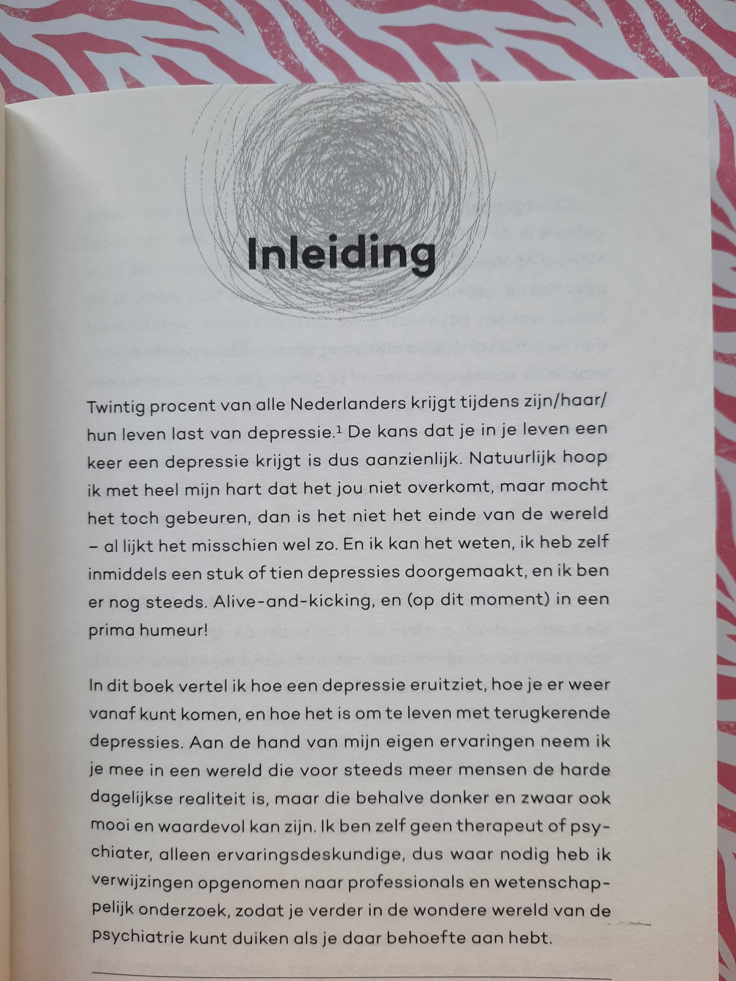 De cijfers van het aantal mensen met psychische klachten in Nederland ligt hoog. En 1 op de 5 krijgt te maken met een depressie. Als je daar de familieleden, vrienden of collega’s bij telt, dan hebben we eigenlijk allemaal te maken met (de impact van) depressies. Dat het ‘advies’: ga gewoon wat leuks doen niet passend is, dat blijkt wel uit het boek. Romeijn vertelt indringend over de symptomen die je kan hebben, waarvan zij zelf alle kenmerken in meer of mindere mate wel ervaart. Sombere stemming, weinig interesse om dingen te doen, slapeloosheid of juist eindeloos veel slapen, maar ook bijvoorbeeld suïcidale gedachtes. Ook daar vertelt Romeijn over.