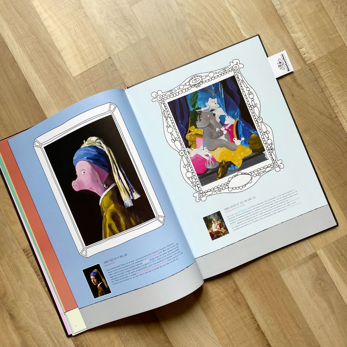 Dus terugkomend op mijn eerste kritische gedachten en kennismaking; ik zie welk effect het heeft op kinderen. En dat belangrijker dan wat een volwassene vindt. Deze boeken spreken echt tot ze en zorgt dat kunst toegankelijk is. Daarbij maakt ze de kunstwerken zo na, dat de associatie snel gemaakt wordt naar het echte werk. Zo ziet mijn oudste dochter op de cover niet meteen het varkentje maar echt Het Meisje met de Parel.