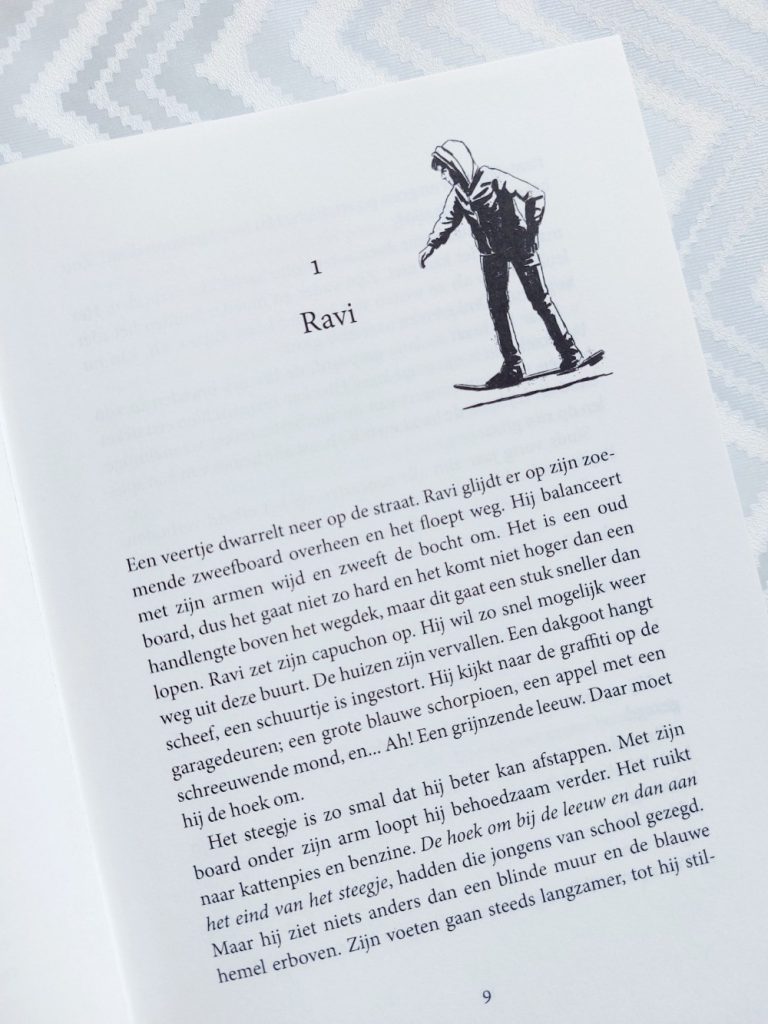 De hoofdstukken in Hart van Staal worden afwisselend verteld vanuit het perspectief van Ravi en Zina. De vaart zit er direct al goed in, waarbij we beginnen te lezen over een eiland, een duif met een belangrijke boodschap en een jongen op zijn zweefboard. Hij bevindt zich in een verlaten steegje in een vervallen buurt. Daar is hij op zoek naar een zekere Blinker, want die heeft een kaartje voor een geheim concert.