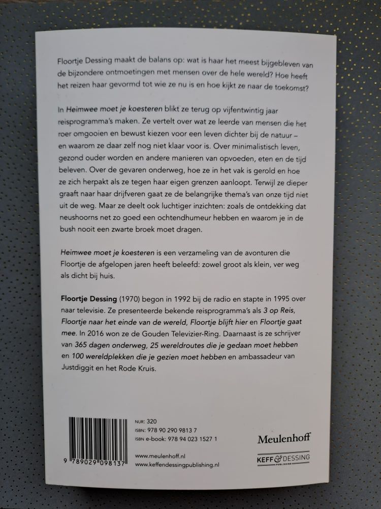 Heimwee moet je koesteren is een terugblik van Floortje Dessing op al haar reizen, de mensen die ze ontmoette en de avonturen rondom het reizen. En ook wat al dat gereis betekent voor haar persoonlijke leven. Floortje Dessing hoef ik vast niet te introduceren: iedereen kent haar wel van de bijzondere reisprogramma’s die zij maakt. Naar het einde van de wereld, of juist dichtbij huis tijdens de corona periode. Ze komt in alle uithoeken van de wereld en is vaak lange tijd van huis is. Hierdoor is haar dagelijks leven aardig anders dan de meeste 50 jarigen hebben. Dat blijkt wel in Heimwee moet je koesteren.
