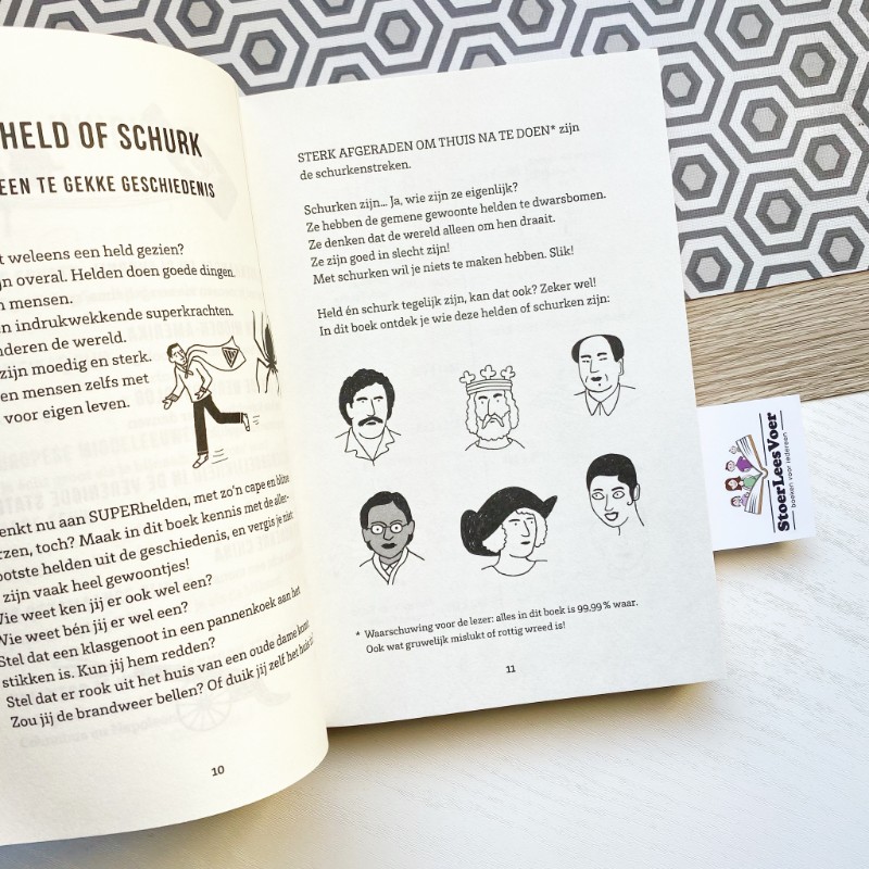 Ik ben enthousiast Held of schurk. Mijn dochter van 8 is net nog wat jong op sommige vlakken. Het boek is namelijk opgeleukt met illustraties, maar het is wel echt een leesboek. Maar samen lezen we graag over onze wonderbaarlijke helden en schurken uit de geschiedenis!