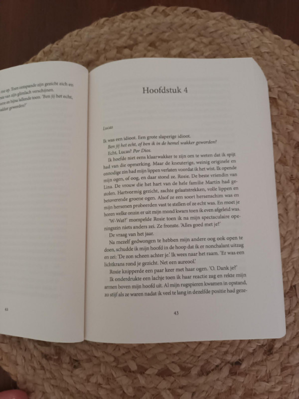 Elena Armas heeft een heerlijke, vlotte schrijfstijl welke erg beeldend is. Hierdoor kon ik alles heel goed voor mij zien. Elena Armas heeft met dit verhaal echt iets origineels neer gezet. De hoofdstukken lees je afwisselend vanuit Rosie en Lucas, hierdoor leer je beide personages goed kennen.