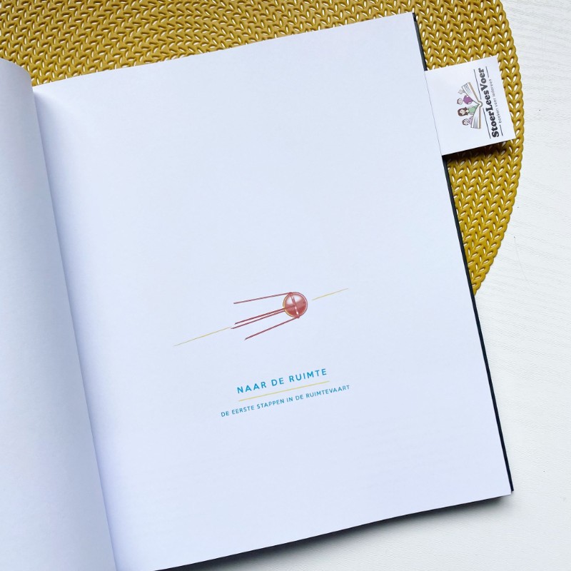 Ik vind als volwassene de grote grafische stempel op Het boek van de ruimtevaart wel erg tof. Dat onderscheidt dit boek weer van andere boeken in dit thema. Het is een goede overbrugging tussen kinderboeken en volwassenboeken. Mijn oudste dochter is wel net iets te jong; ze is negen jaar. Ze verliest snel haar aandacht door de vormgeving. Maar dat is niet negatief. Ze bladert wel echt gericht in dit boek naar een voor haar boeiende pagina en dan mag ik haar voorlezen. Het kijkje in een raket vindt ze bijvoorbeeld heel interessant. Dankzij de heldere grafische vormgeving is het heel duidelijk in beeld gebracht. Ook helpt de consequentheid van de vormgeving bij kinderen om te snappen hoe de informatie gedeeld wordt.