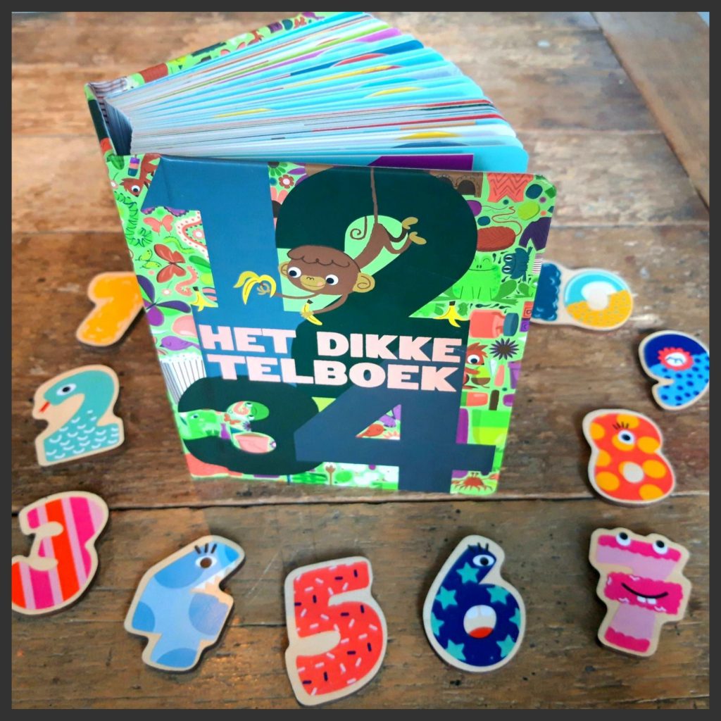 Het blijft altijd grappig om bijvoorbeeld met jonge kinderen verstoppertje te spelen. Om te horen hoe ze het rijtje afraffelen naar 10. Want het gaat vaak nog een tijdje van 1, 2, 3, 5, 8, 10. Maar de ontwikkeling van het goed leren tellen kan ineens razendsnel verlopen. Oefenen met tellen is in ieder geval een goed idee. Een telboek hoort dus echt thuis in de boekenkast. En dit HELE DIKKE telboek hebben wij met veel plezier gelezen!