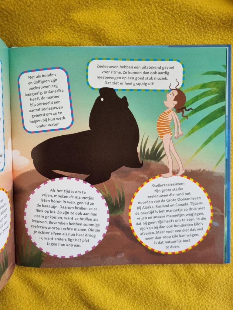 Daarnaast sluit Het dikke zeedierenboek af met aansprekende foto’s van de auteurs en illustratoren. Daarbij hebben ze, in kindertaal, een stukje geschreven over hen. Mijn kinderen zijn altijd heel nieuwsgierig wie een boek gemaakt heeft. Het leuke is dat ze de stijl ook vlot herkennen en dan boeken uit de kast pakken van dezelfde mensen. Dit komt waarschijnlijk omdat mijn man en ik dit altijd expliciet bespreken met ze. Een tip van ons voor jullie, want op deze manier doe je aan tekstbeschouwing en kunstbeschouwing! In de klas een must, thuis gewoon hartstikke leuk.