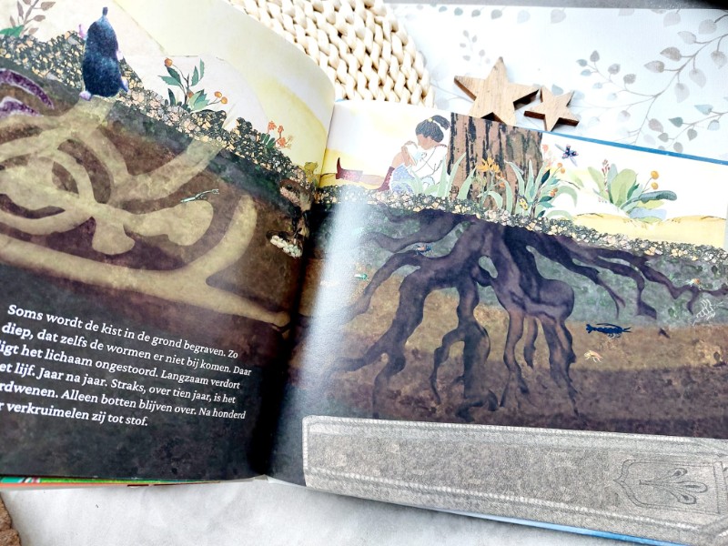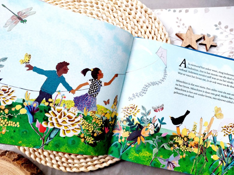 Als ouder kun je niet overal antwoord op geven. Maar praten is wel belangrijk. Wat geeft Floor Bal in dit prentenboek mooie inzichten en uitleg. Door samen met je kind te lezen, kun je het onderwerp van de dood een plekje geven. Je kunt bijvoorbeeld bespreken wat er na het einde van iemand komt, en hoe iedereen dit stuk van het verhaal weer anders kan en mag invullen.