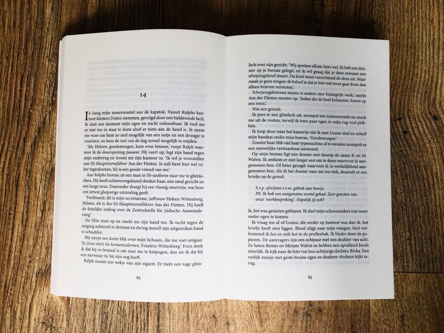 Dan hebben we nog de tegenstelling van het verhaal van Heleen (het hoofdverhaal) in de Tweede Wereldoorlog en het verhaal van Joyce wat zich in deze tijd afspeelt. Deze verhaallijnen vallen mooi in elkaar. En er blijft tot het einde wat te raden over.