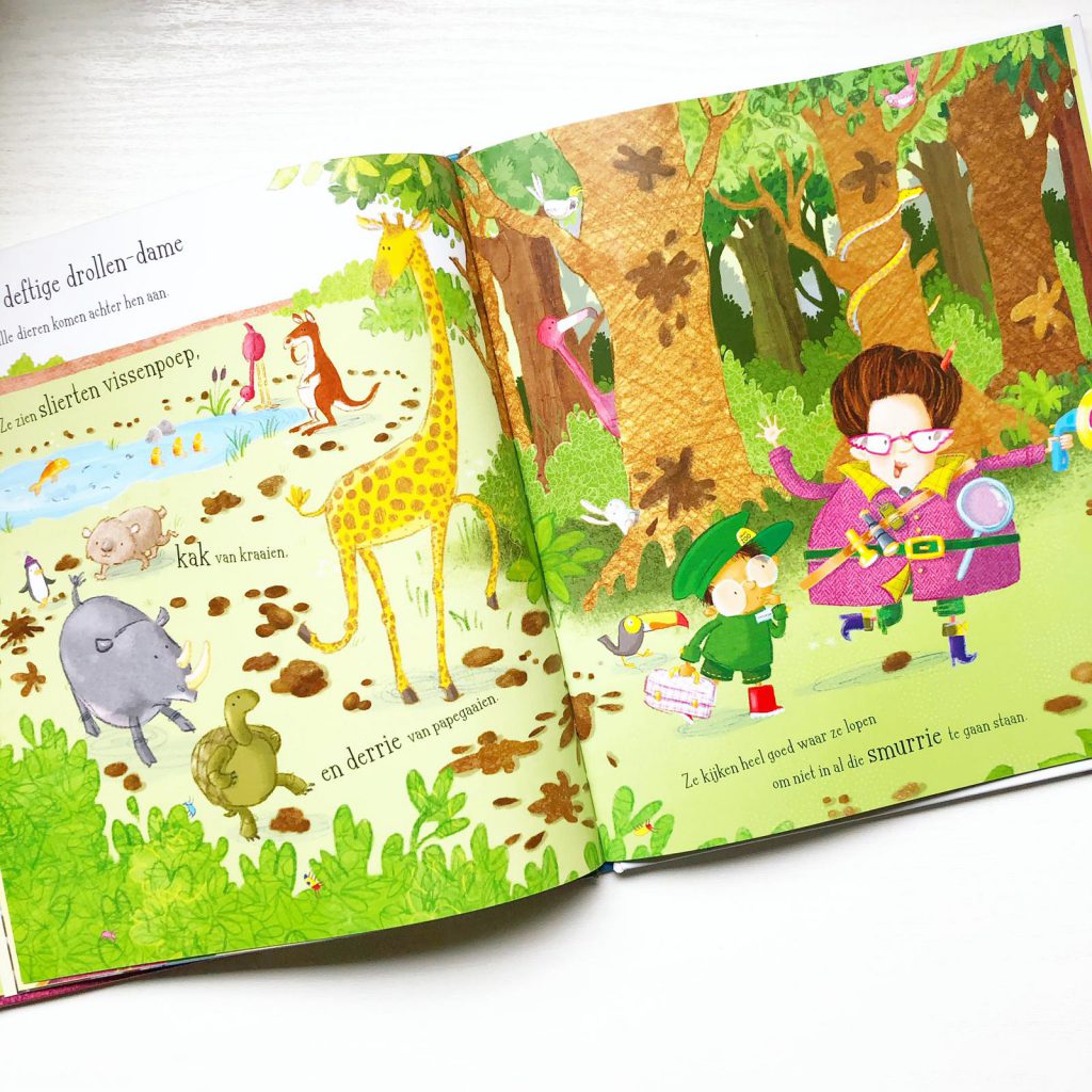 Het is een heerlijk vrolijk verhaal, vol gekkigheden. Niet alleen de poep en drollen vliegen om je oren maar ook andere grappige elementen komen voorbij. De prenten zijn kleurrijk en vol leuke dingen om te zien en ontdekken. Het is geen onsmakelijk boek door alle poep. Vooral heel vrolijk en leuk. Mijn dochter vind het erg vermakelijk. En het einde is erg leuk bedacht. Dus ik vind het een aanrader voor alle vrolijke lachebekjes die een goede poepgrap kunnen waarderen en van dieren houden!