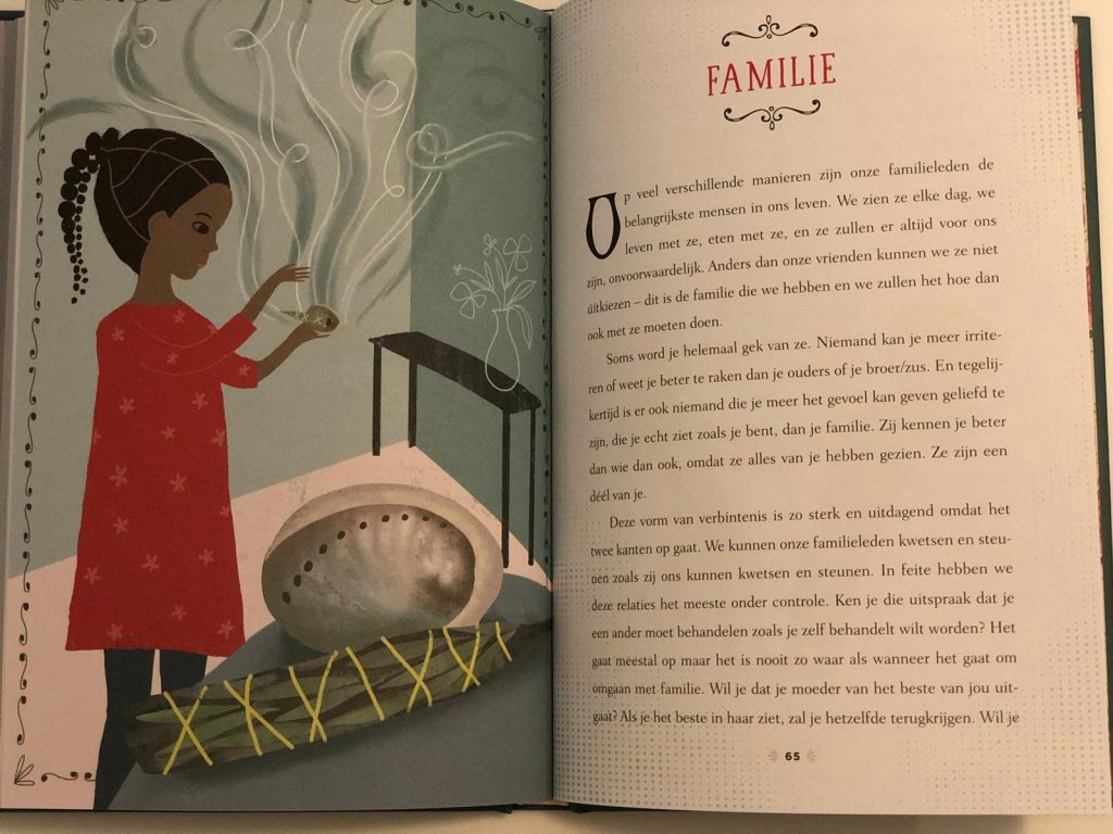 In Het Heksenhandboek kan je voorin je naam schrijven en als je het hele handboek hebt doorlopen is er zelfs een heksendiploma. Je vraagt je misschien af wat er allemaal te leren valt in dit boek. Ik geef een voorbeeld. Je doet allemaal wel eens iets wat je eng of spannend vindt en waar je wel wat magie bij kan gebruiken. In Het Heksenhandboek vind je een spreuk voor moed. Je hebt dan wel wat ingrediënten nodig welke in het begin van het boek terug te vinden zijn. Nadat je in kleermakerszit bent gaan zitten en je “toverstok” hebt gebruikt om een magische cirkel om je heen te trekken en een kaars hebt aangestoken, lees je de spreuk in boek hardop op. Je zal merken dat het je kracht geeft.