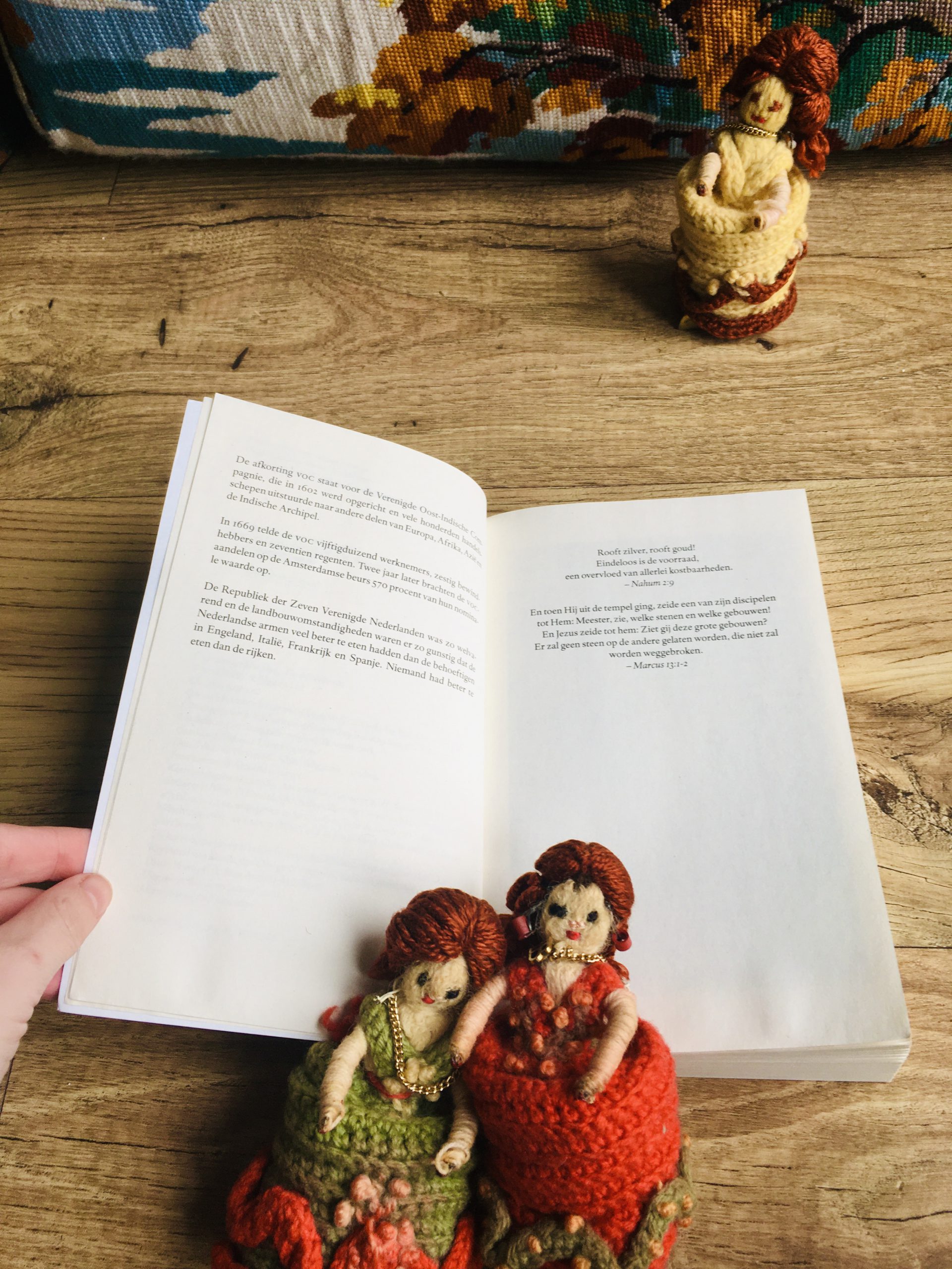 De gebreide popjes op de foto’s zijn door mijn overgrootmoeder gemaakt. Ik vind ze zo goed bij de stijl van Het huis aan de gouden bocht passen. Ze zijn ongeveer 120 jaar oud en gebruikt als eierdopjes.