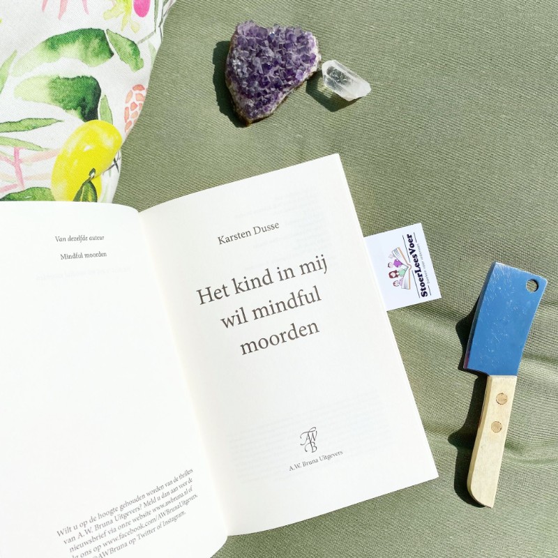 Yes, met zo’n titel en synopsis kon ik niet wachten om in Het kind in mij wil mindful moorden te duiken. Deze literaire thriller belooft een interessante mix te zijn van humor, thriller en mindfulness. Ik heb zelf ook de nodige ervaringen, zowel positief als minder positief. Met mindfulness dan hè, niet het moorden. Ik denk dat ik redelijk open, maar zeker ook nuchter en sceptisch in de mindfulnesswereld sta. Aandacht voor je innerlijk is zeer zeker goed, noodzakelijk zelfs. Maar erin doorslaan gebeurt in mijn ogen ook met zeer zekere regelmaat. Toch ben ik gek op mijn edelstenen en ken ik vele eventuele werkingen hiervan. Ik hou van mijn essentiële oliën en af en toe een ademhalingsoefening brengt mij de rust die ik soms kan gebruiken.
