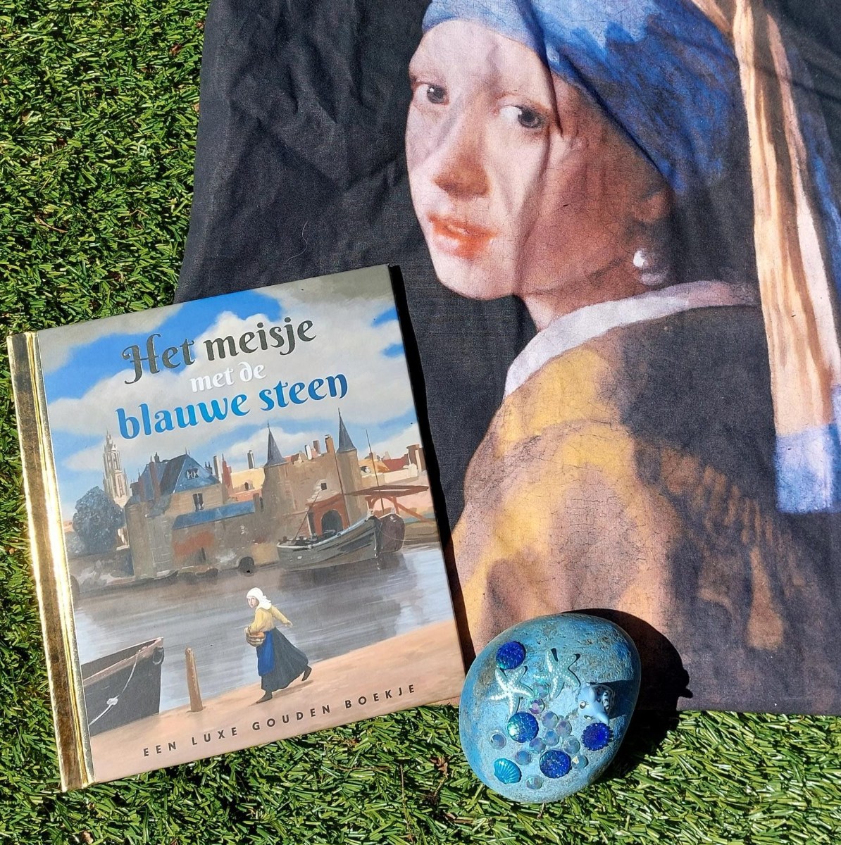 Het prentenboek het meisje met de blauwe steen vertelt het verhaal van het meisje met de parel. Jo is sinds de Delftse Donderklap in één klap groot en moet voor iedereen zorgen. Maar doordat ze zo klein is let eigenlijk niemand op haar. Perfect om een geheime bezorger te worden. En zo belandt ze met een blauwe steen bij Johannes Vermeer.