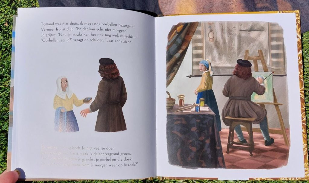 Ik ben niet een geboren en getogen Delftenaar. Ik woon er pas 14 jaar. Maar mijn dochter is er wel geboren. Johannes Vermeer kwam ook uit Delft. In de tijd dat hij leefde was hij niet echt beroemd, maar jaren later werd hij dat wel door onder andere Het meisje met de parel en het melkmeisje die beiden te zien zijn in het prentenboek het meisje met de blauwe steen. Een gouden boekje op rijm met een blauw teintje.