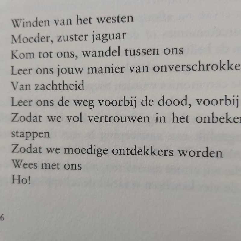 ‘’Je wordt uitgenodigd om ceremonies uit te voeren die een belichaming zijn van lessen van wijsheid en die het je mogelijk maken om nieuwe energieën te gebruiken, namelijk die van de vier windrichtingen en de vier krachtdieren.’’