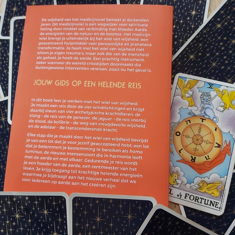 De wijsheid van het medicijnwiel bestaat al duizenden jaren. Dit medicijnwiel is een wegwijzer voor spirituele heling door middel van verbinding met moeder Aarde, de energieën van de natuur en de kosmos. Het medicijnwiel brengt je uiteindelijk bij Het wiel van de wijsheid: een geavanceerd hulpmiddel door persoonlijke planetaire transformatie. Je heelt met het wiel van wijsheid niet alleen je eigen trauma’s, maar ook die van de mensheid als geheel, je heelt de aarde. Een prachtig instrument, zeker wanneer de wereld crisistijden doormaakt die buitengewone interventies vereisen, zoals nu het geval is.